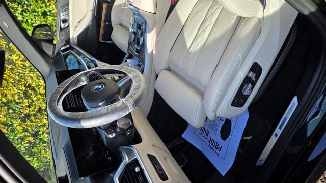 BMW X5M après nettoyage et dressing plastiques, nettoyage et soin des cuirs et aspiration en profondeur.